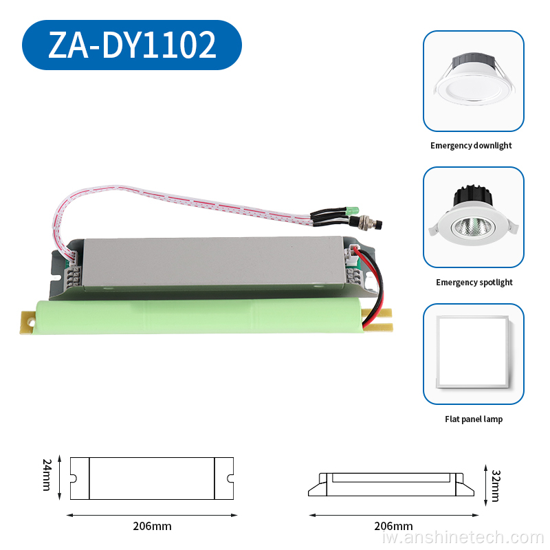 מוצר זה דגם AS-DY1102 הוא ספק כוח חירום עם פלט כוח מלא וספק חירום מסוג מפוצל. במצב חירום, הוא יכול להניע באופן רציף מנורות LED בהספק מדורג של 20W, מה שעולה בקנה אחד עם הבהירות במצב הכוח הראשי, ולמנוע את הבעיה של הפחתה משמעותית בבהירות של נורות חירום קונבנציונליות. הפלט שלו יציב ויכול לספק תאורת חירום מספקת ויעילה עבור נורות חירום LED ומכשירים אחרים.